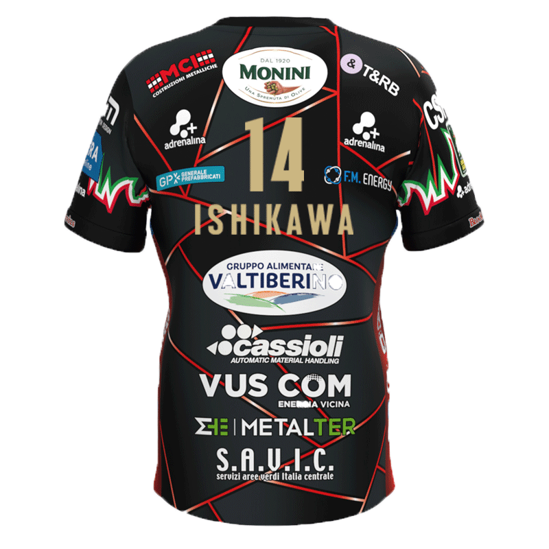 バレーボール イタリア セリエA セーフティペルージャ 2025-26 試合用ジャージ コッパイタリア ホーム用 14 石川祐希 (ブラック)
