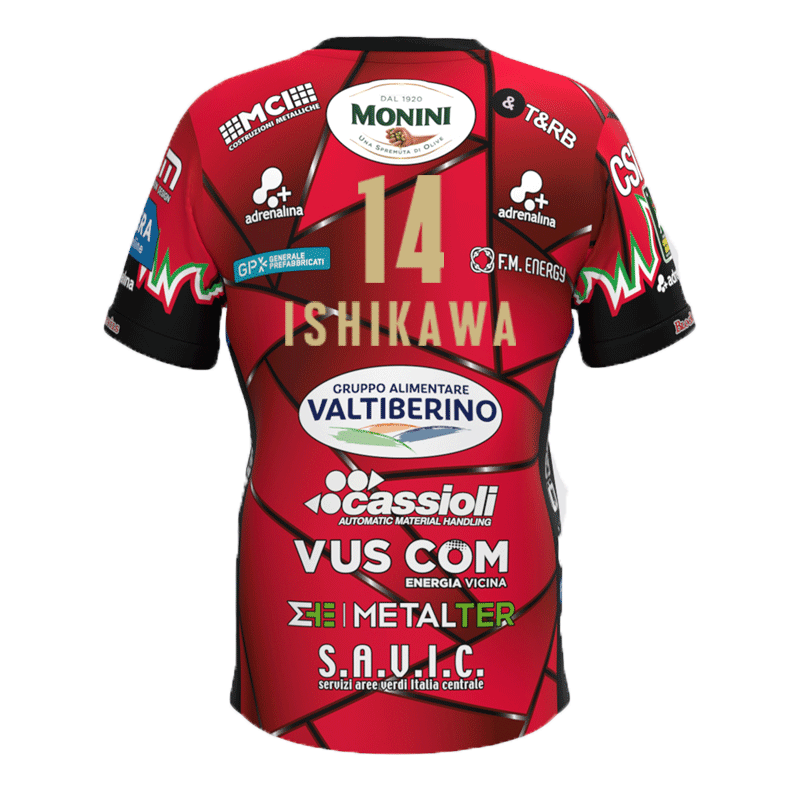 バレーボール イタリア セリエA セーフティペルージャ 2025-26 試合用ジャージ コッパイタリア アウェイ用 14 石川祐希 (レッド)