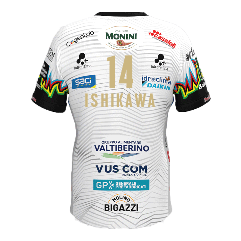 バレーボール イタリア セリエA セーフティペルージャ 2025-26 試合用ジャージ アウェイ用 14 石川祐希 (ホワイト)