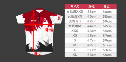 サイズは女性用XXS~M、男女兼用XXS~XXLの11段階です。