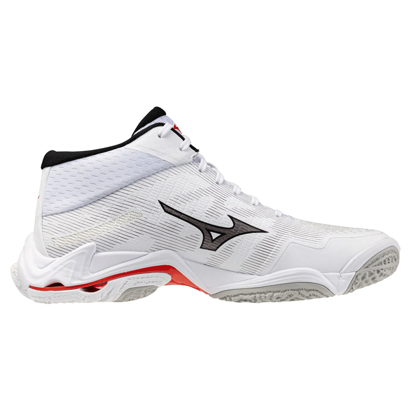 ミズノ 日本未発売 インドアシューズ ウェーブライトニング エリート ミッド (ホワイト/ブラック/ファイアリーレッド)