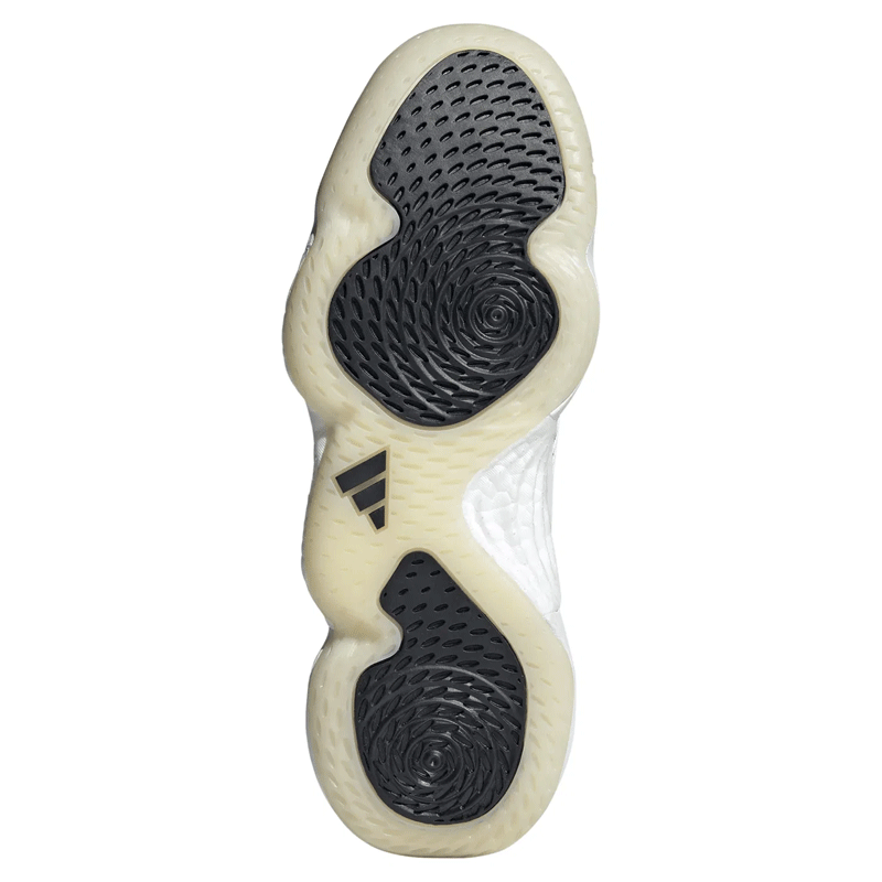 シューズ両側面で全く異なる構造を採用した斬新なデザインで、またアウトソールにもこれまでにない斬新なパターンが施されています。